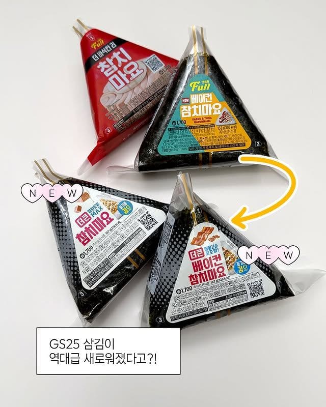 슬라임 이제 삼김은 GS25로 정착 완료! O(∩_∩)O 모서리 끝까지 꽉 차버린 토핑 양 좀 보세요🍙 여기에 들기름 바른 김의 꼬수함은 진짜 MAX! ↗️ 한 끝이 다른 맛, 이제 편의점 삼각김밥도 GS25에서 제대로 경험해 보세요! 😎 💗더큰)참치마요 1,700원 💗더큰)베이컨참치마요 1,700원 #GS25 #GS25신상 #삼각김밥 #삼김 #참치마요 #베이컨참치마요 #편의점신상 #편의점꿀템 #가성비맛집 #먹스타그램 #점심메뉴추천 #간식추천 #GS25추천 #더큰삼각김밥 #들기름김 #삼김정착 #인생삼김